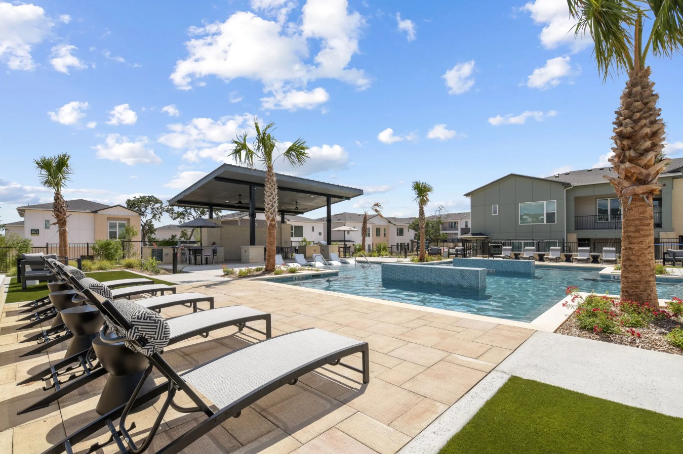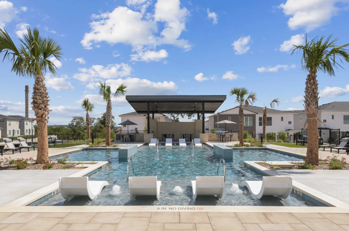 This luxury community goes beyond the standard with a suite of amenities designed for an elevated lifestyle. Residents can enjoy a stunning resort-style pool, an outdoor pavilion with a grill station perfect for entertaining, and a fully equipped fitness center. It also features a courtyard and a dedicated dog park, providing a true sense of community and a place for every member of the family to thrive.