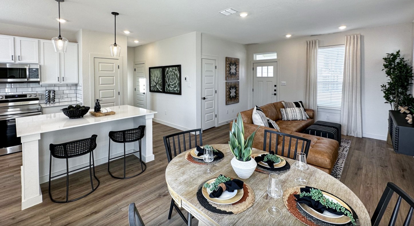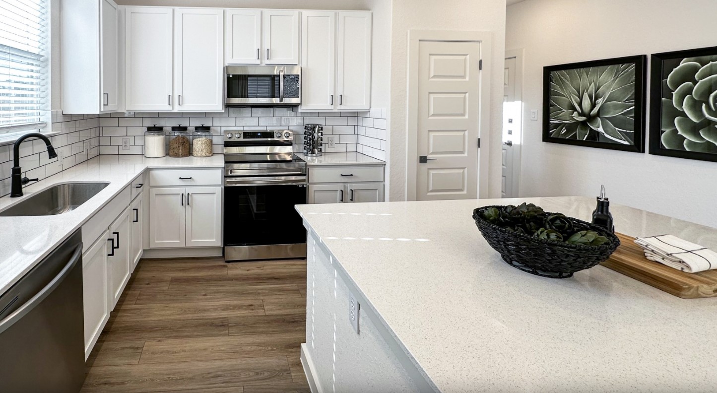 The homes themselves are a masterpiece of modern design. Each home features private patios and backyards, high ceilings, and full-service landscape and home maintenance. The chef-inspired kitchens, with their stainless steel appliances, ceramic tile backsplashes, and natural stone countertops, are perfect for creating culinary masterpieces. For added convenience, each home also includes an attached private garage and keyless entry.