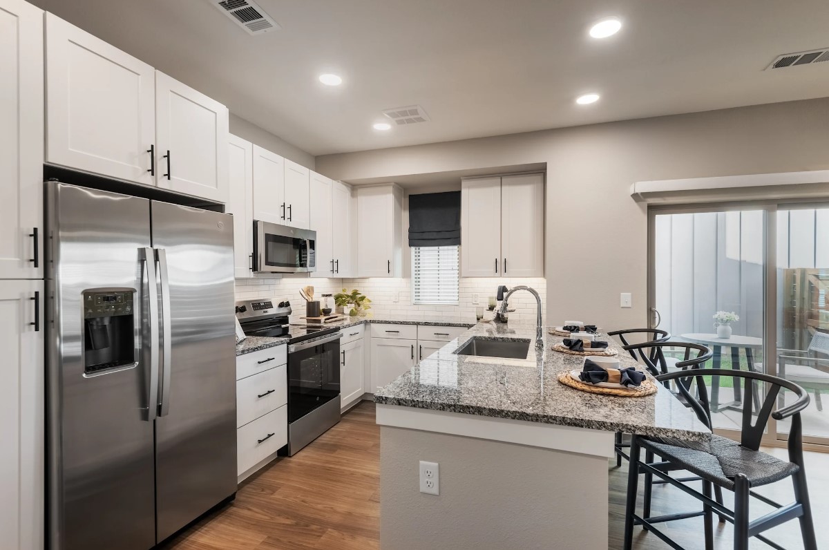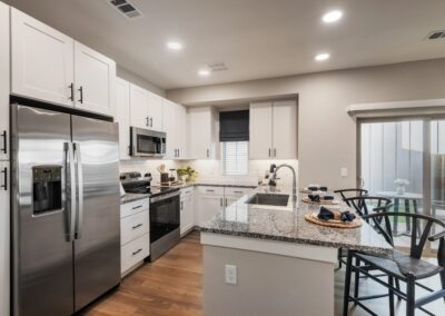 The residences themselves are a masterpiece of modern design, offering the rare exclusivity of cottage-style layouts with no neighbors above or below. Each home features soaring nine-foot ceilings and gourmet kitchens equipped with custom shaker cabinetry, granite countertops, and premium GE stainless steel appliances. The lifestyle is further enhanced by expansive private yards and attached garages, providing the feel of a custom-built home with the convenience of a managed community. Every detail, from the wood-style flooring to the designer lighting packages, has been curated for the discerning eye.