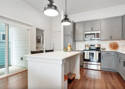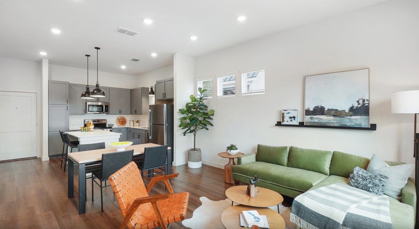 The homes themselves are masterpieces of contemporary design, emphasizing space, light, and high-end finishes. Every residence features private ground-floor entries and the option for direct-access garages, providing the feel of a custom single-family home. Inside, you will find 10-foot ceilings, wood-style flooring, and gourmet kitchens equipped with quartz countertops and stainless steel appliances. For those seeking true outdoor privacy, select homes include private side yards and courtyards, perfect for evening relaxation in the cool Hill Country breeze.
