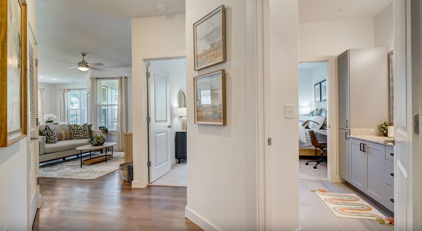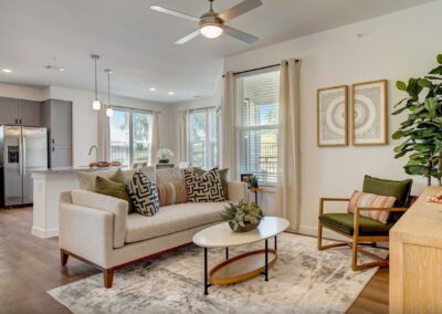 The homes themselves are masterpieces of contemporary design, emphasizing space, light, and high-end finishes. Every residence features private ground-floor entries and the option for direct-access garages, providing the feel of a custom single-family home. Inside, you will find 10-foot ceilings, wood-style flooring, and gourmet kitchens equipped with quartz countertops and stainless steel appliances. For those seeking true outdoor privacy, select homes include private side yards and courtyards, perfect for evening relaxation in the cool Hill Country breeze.